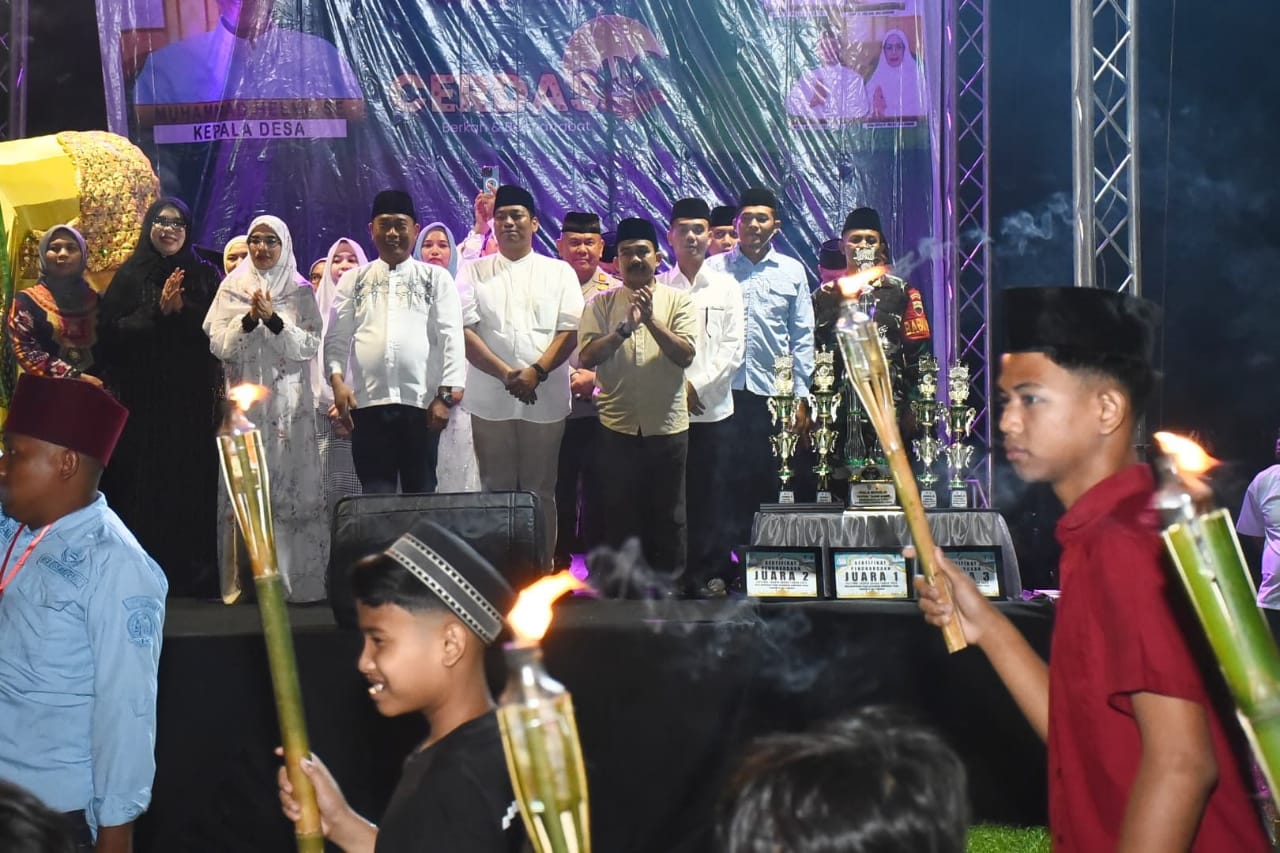 Wakil Bupati (Wabup) Deli Serdang, Lom Lom Suwondo SS bersama Wakil Ketua Tim Penggerak Pemberdayaan Kesejahteraan Keluarga (TP PKK) Deli Serdang, Ny Asniar Lom Lom Suwondo, melepas peserta Pawai Obor dan Kendaraan Hias pada Festival Takbir Akbar Desa Hamparan Perak Tahun 2025 di Lapangan Sepakbola Pulo Agas, Dusun VII, Desa Hamparan Perak, Kecamatan Hamparan Perak, Minggu (30/3/2025) malam.Dengan diselenggarakannya Festival Takbir Akbar tersebut menandakan Kecamatan Hamparan Perak merefleksikan visi Kabupaten Deli Serdang yang religius.